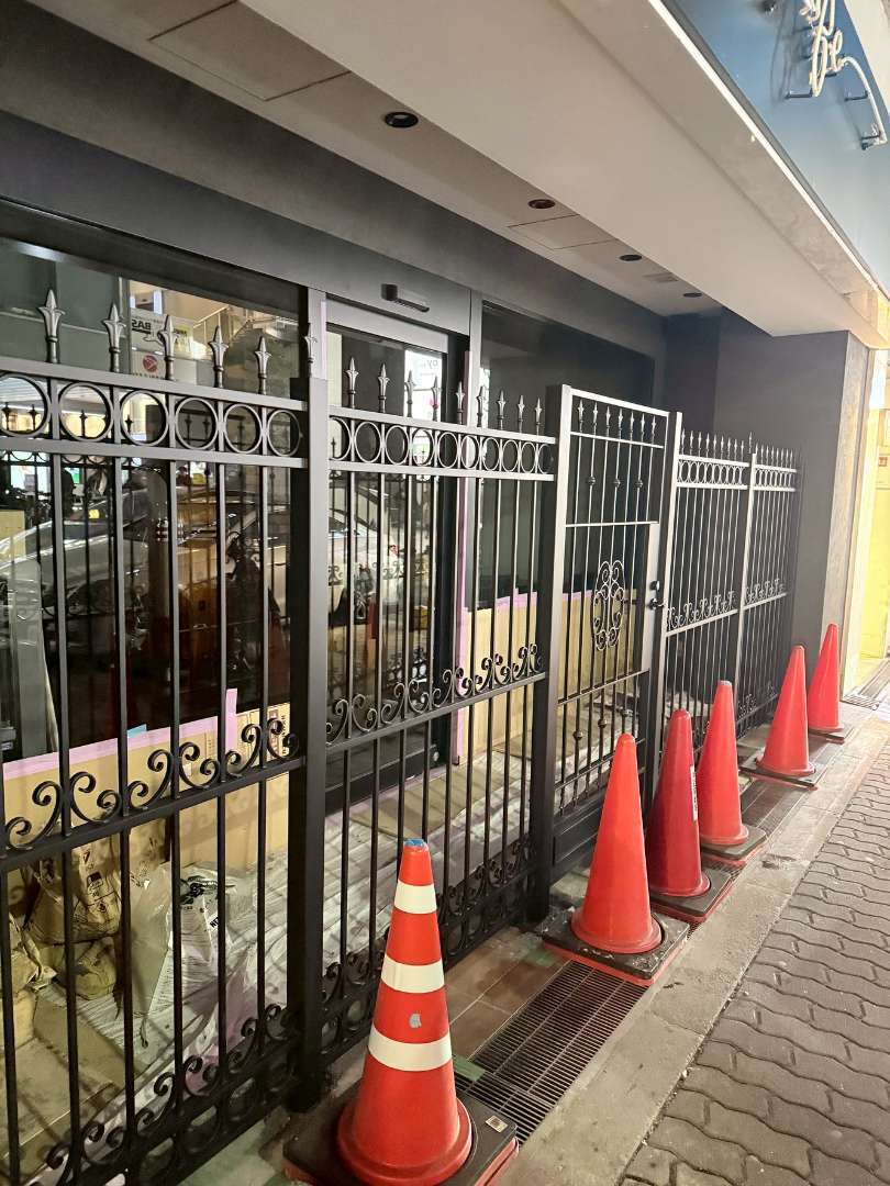 店舗の入り口の扉付きフェンス取り付け工事を行いました。